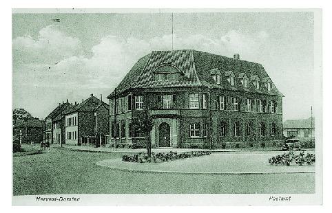 Nach dem 1937 erfolgten Beitritt der Stadt Dorsten zum 1929 gegründeten Amt Hervest-Dorsten verlegt die Amtsverwaltung ihren Sitz von Wulfen auf den Klapheckschen Holzplatz. | |