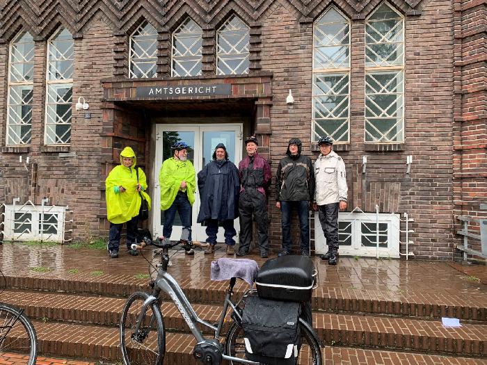 Zunächst schien es so, als würde die Fahrradtour nicht stattfinden. Es war einer der wenigen Tage in diesem Sommer, der so richtig verregnet war. Dem schlechten Wetter zum Trotz, war der Organisator der Radtour pünktlich um 10:00 Uhr am Treffpunkt vor dem Amtsgericht Dorsten.