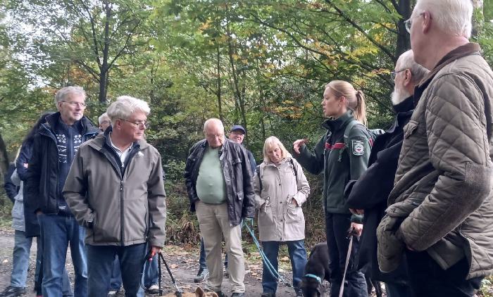 Bei angenehmem Herbstwetter führte die erfahrene Försterin die Gruppe durch den nahegelegenen Wald und vermittelte dabei interessante Einblicke in die heimische Tier- und Pflanzenwelt. Sie sprach über aktuelle Themen der Waldpflege, den Einfluss des Klimawandels auf den Baumbestand und gab viele praktische Beispiele aus ihrem Revieralltag.